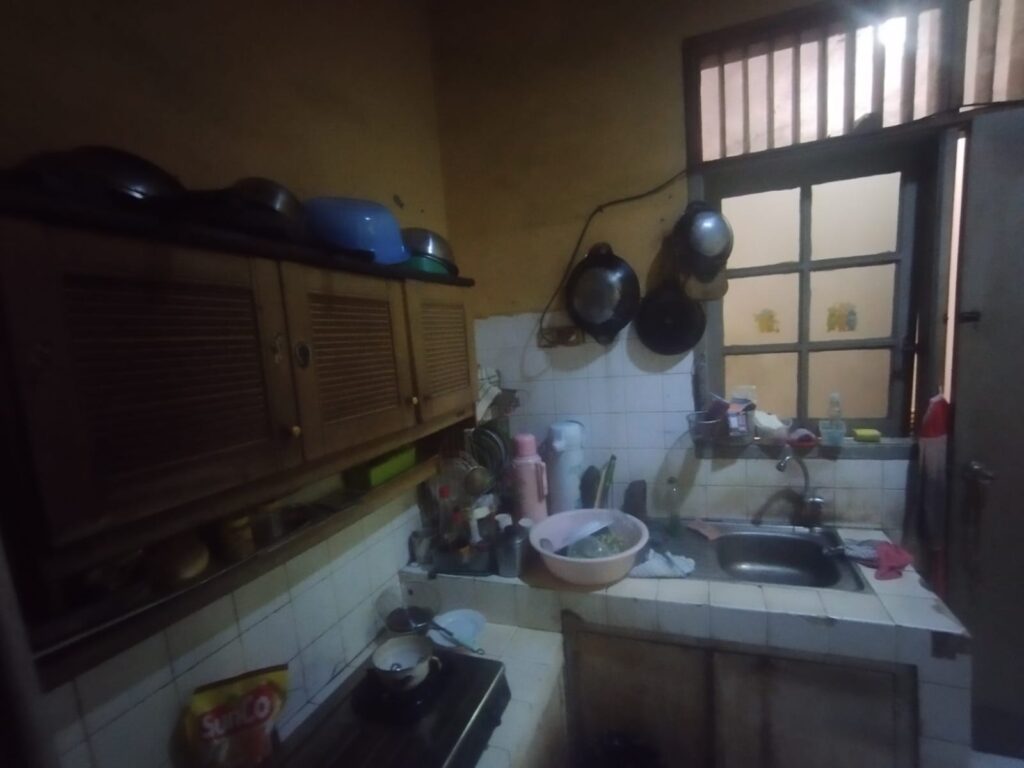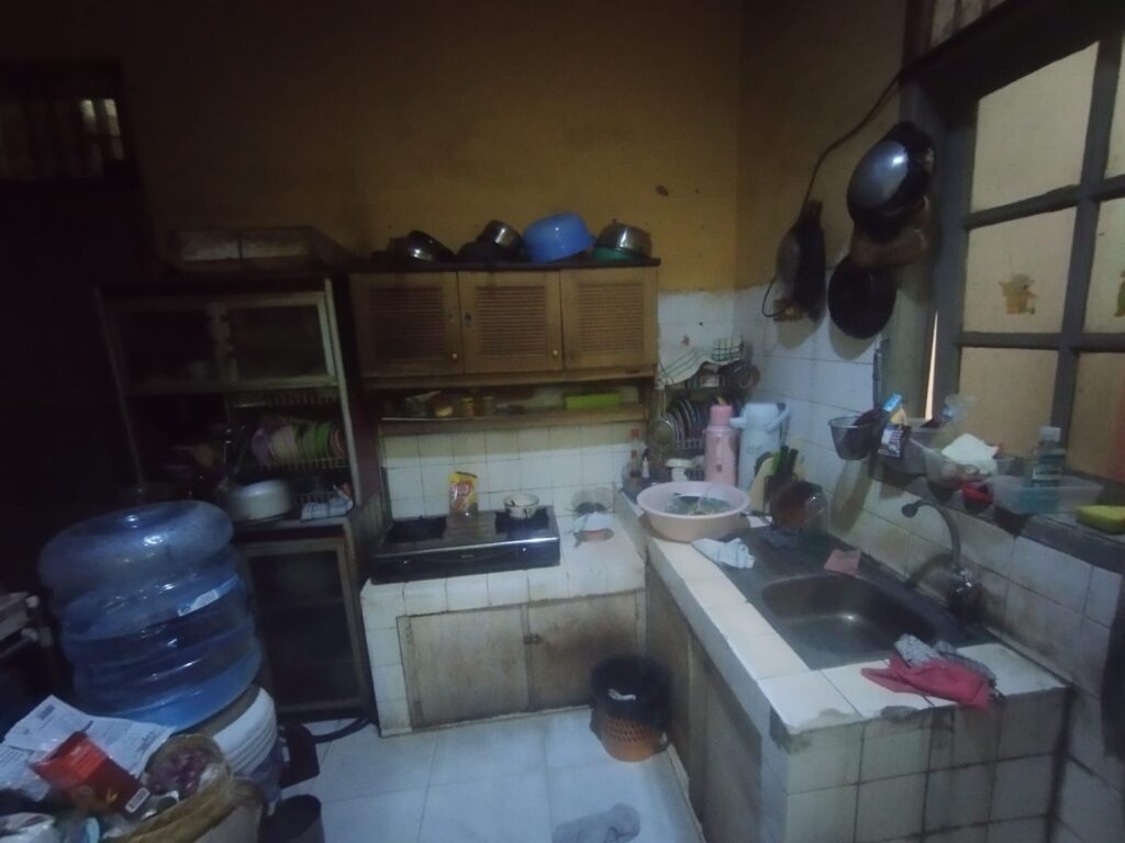 • Meja Cor Keramik Lama: Penggunaan ubin putih kecil pada meja dapur memberikan kesan visual yang “ramai” dan sulit dibersihkan pada bagian nat.